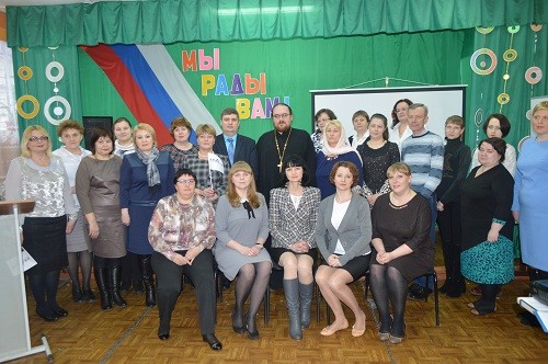 Руководитель духовно-просветительского центра Татьяна Шмакова рассказала о серии православных книг, которые находятся в центре, о планах работы, а также показала фрагмент занятия урока по основам православной культуры, где гимназисты познакомились с десятью заповедями.
