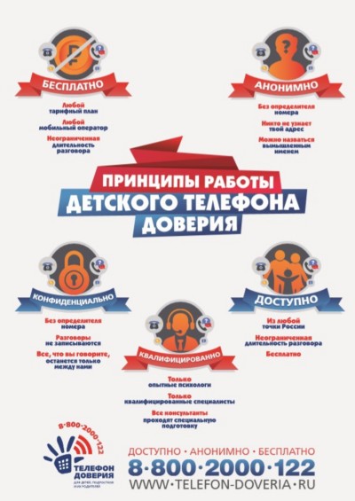 4. Конфиденциальность — содержание разговора останется тайной. Никакая информация об обратившемся за помощью на Детский телефон доверия, а так же о тематике его обращения не раскрывается.